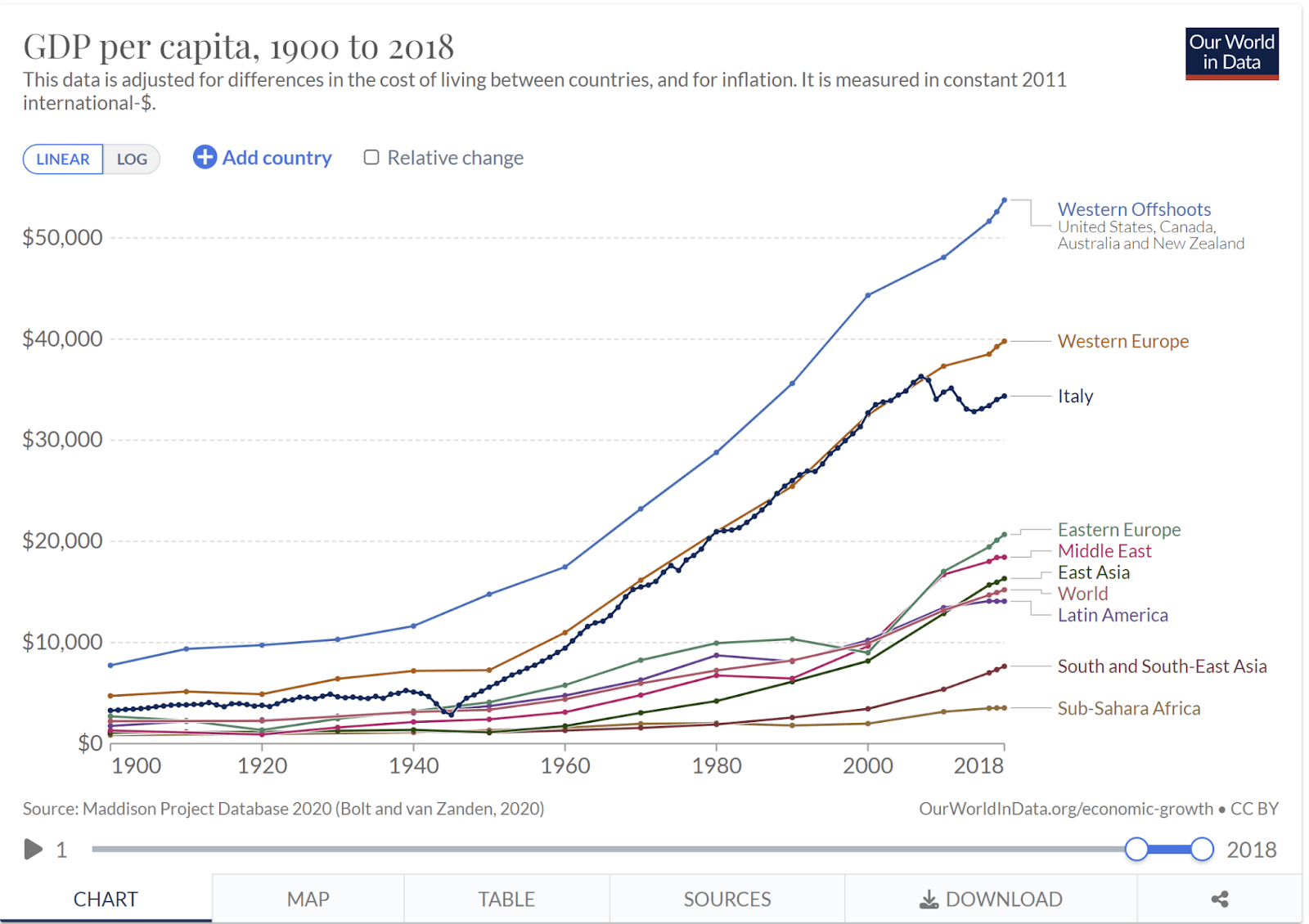 Da allora, alcuni stati hanno vissuto una grande crescita – per esempio, gli svedesi sono oggi circa 30 volte più ricchi rispetto a due secoli fa – mentre altre economie sono cresciute in misura minore. Questo sviluppo diseguale è risultato nelle disuguaglianze estreme che vediamo oggi.