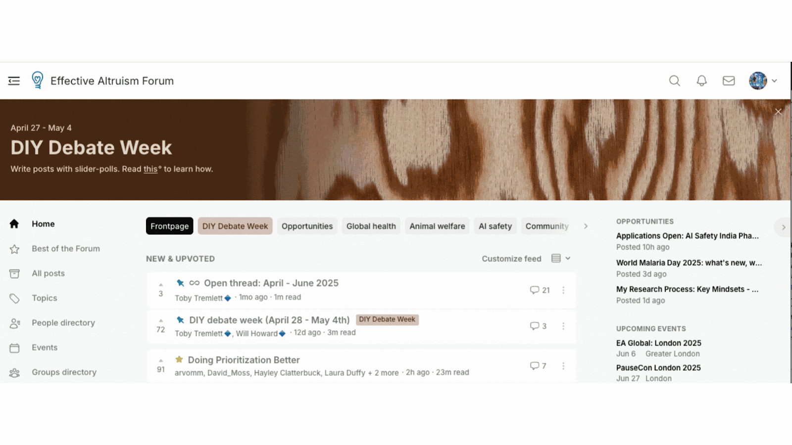 - We’ve set up a Substack mirror for our weekly EA Forum Digest. We hope that this helps more people find and engage with valuable Forum posts!