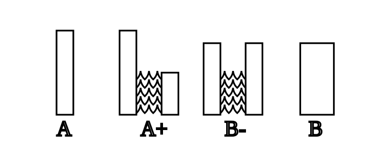 - Finally, “B− is equal to B,” since B is simply the same groups, only combined.