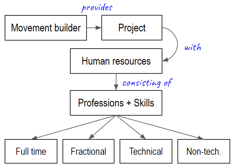 AI Safety Movement builders start, sustain and scale project by contributing resources (e.g., knowledge, attitudes, habits, professions, skills and ideas). Their main contribution is 'human resources': access to the professions and skills that the project needs to start or scale.