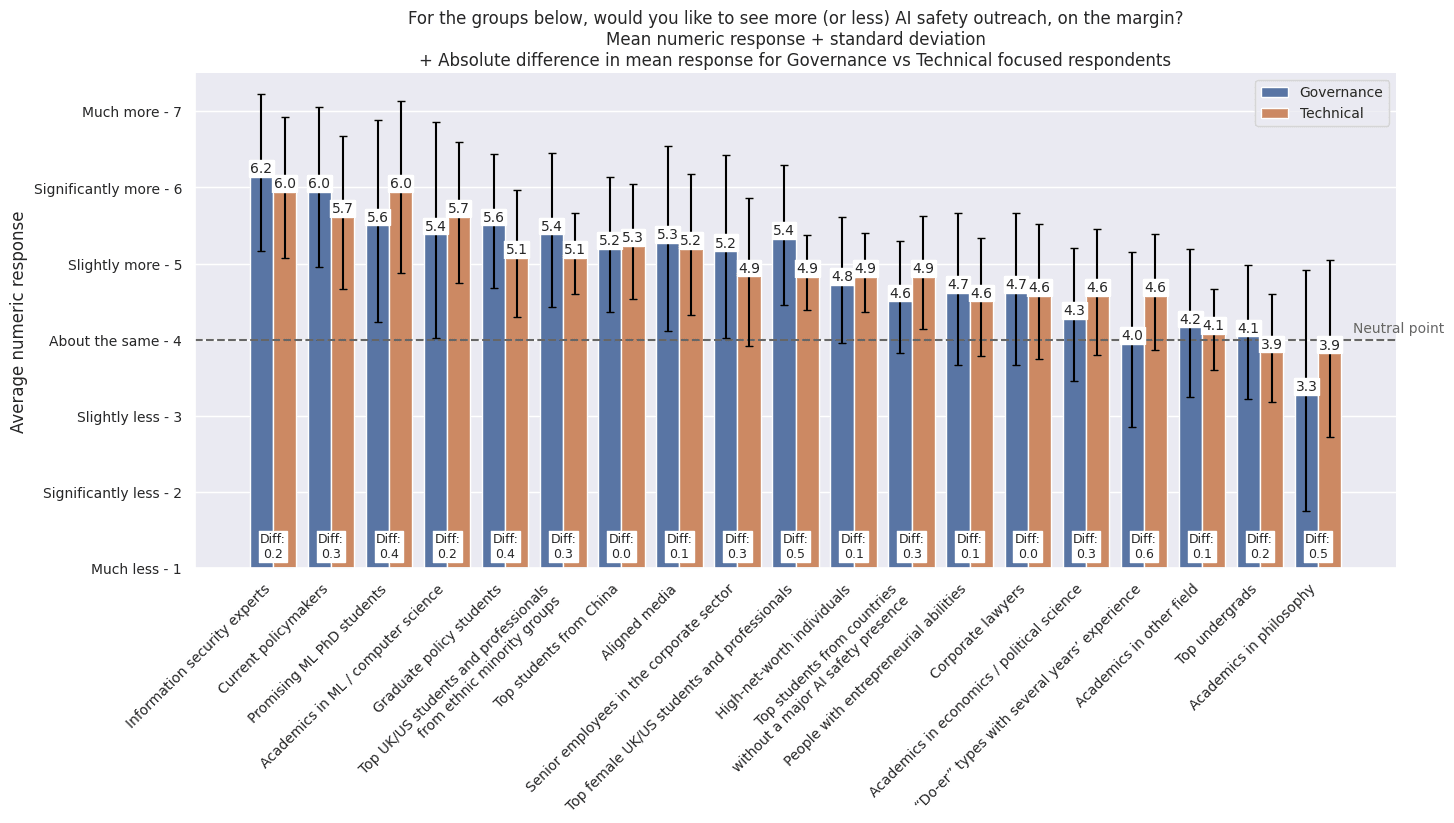 For the groups below, would you like to see more (or less) AI safety outreach, on the margin?[1]