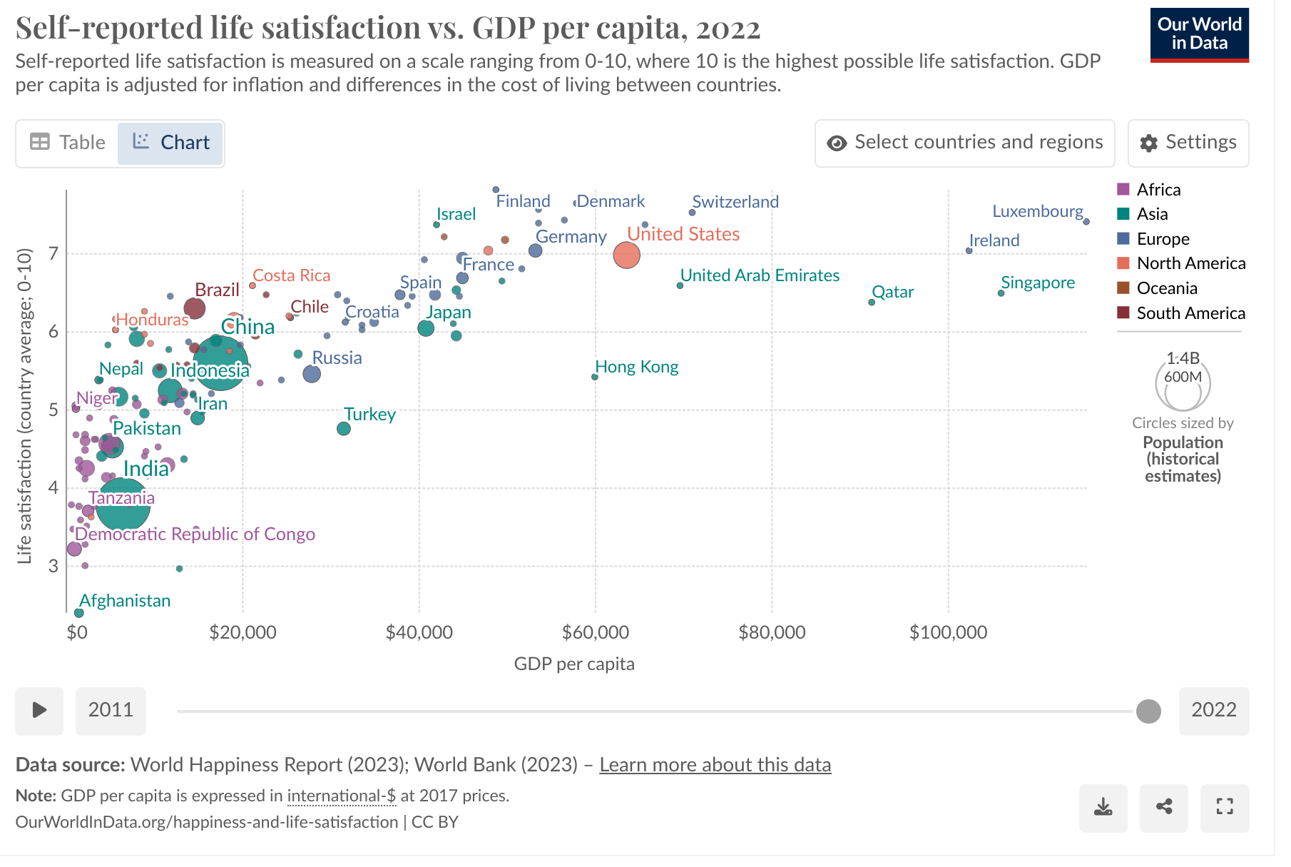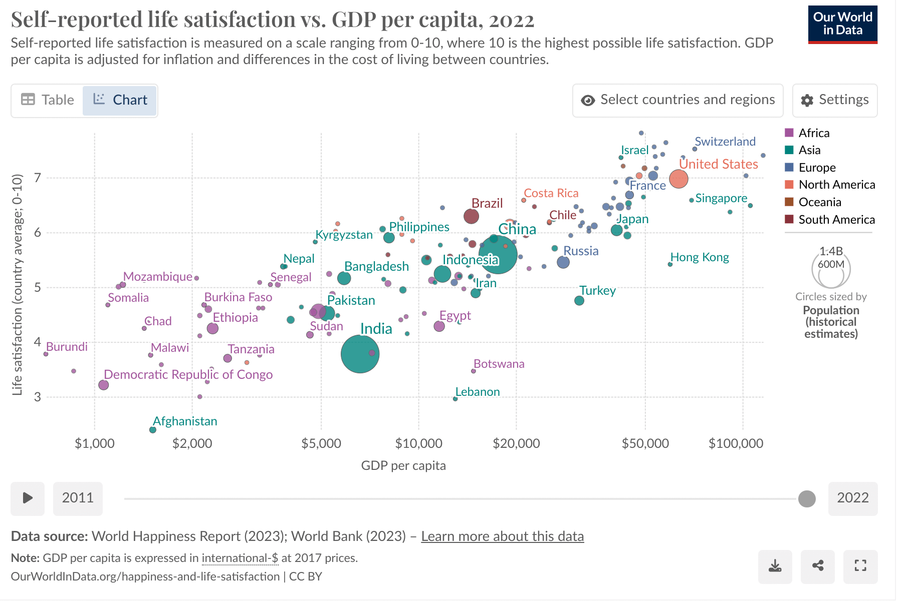 Here's the OWID charts for life satisfaction vs. GDP/capita. First linear (per the dovecote model):