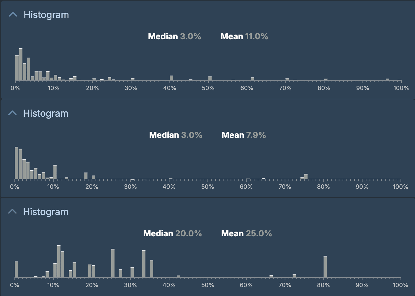 * All the histograms have odd tails (somewhat dampened by Metaculus reporting medians):