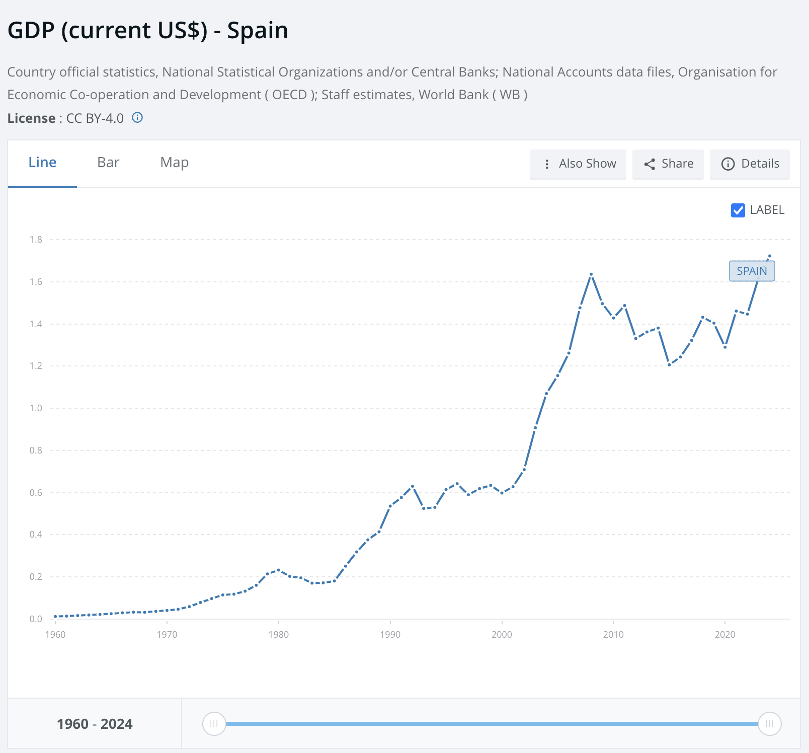 For a random example, observers in 2009 might have mispredicted Spanish GDP over the next ten years if they placed a lot of weight on this prior.