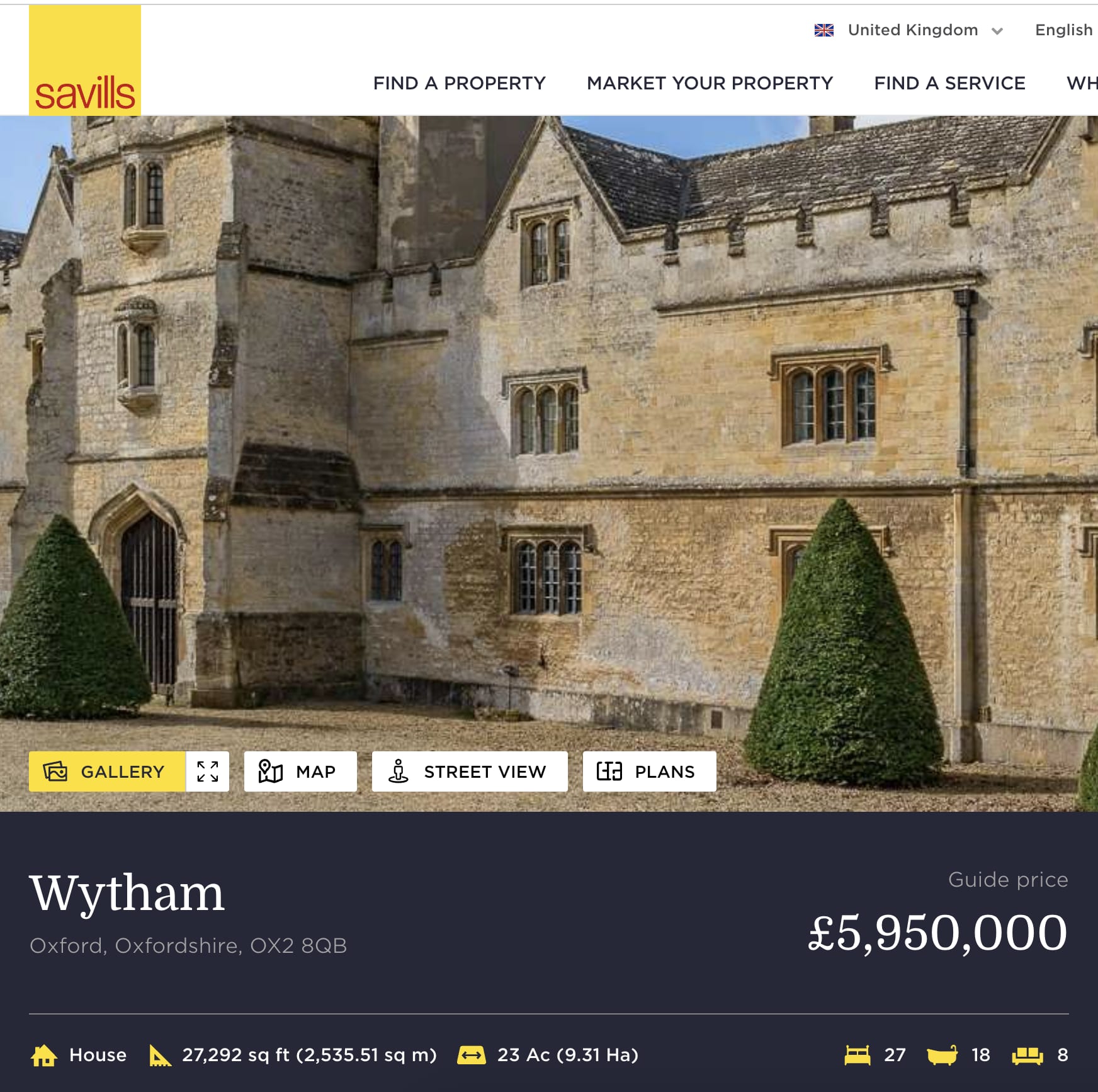 EV appears to be struggling to sell Wytham Abbey, with its listed price now at under £6M https://search.savills.com/property-detail/gbswrssus240139