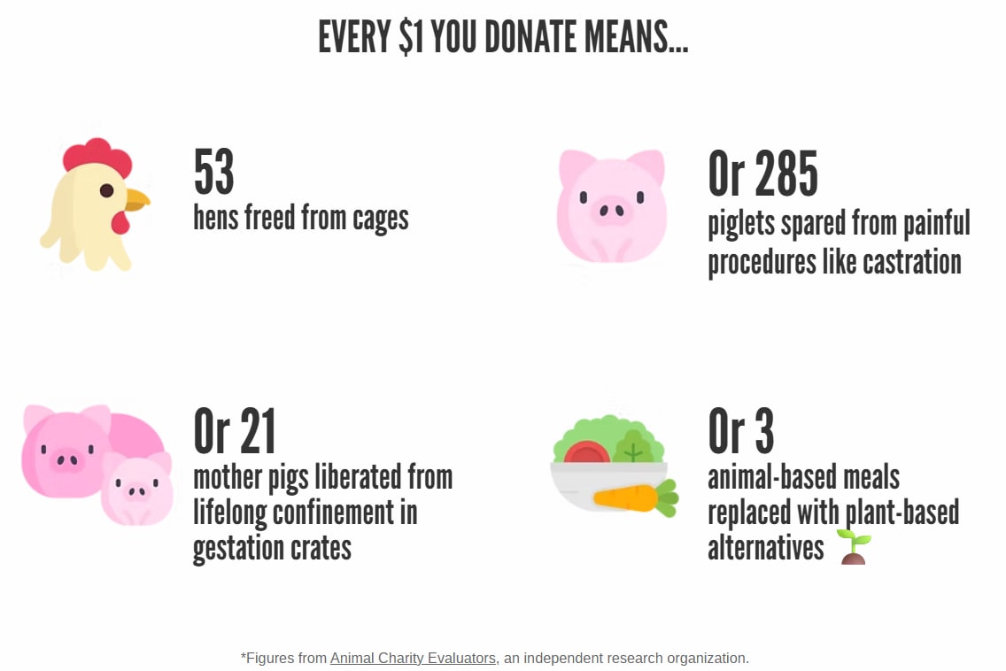 Less than 24 hours after the fraud post, Sinergia removed the 354 piglets per dollar metric from their main donation page, and replaced it with a new claim: 285 piglets per dollar.[2] However, this updated metric is still based on knowingly false information.